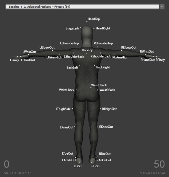 When placing the shoulder markers, ask the actor to stand in the T-pose in order to place the markers on accurate locations. It could also be helpful to ask the actor to do few rounds of arm abduction and adduction to palpate for the shoulder axis. These markers determine the width of the shoulder and respective relationship with the upper arm segment.