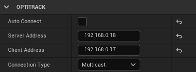 [Unreal] In the Details panel, make sure its Auto Connect setting is checked. This configures the client origin to automatically search the network and connect to Motive.