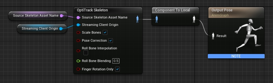 Step 5. Right-click the animation graph, then create a new "Component To Local" and connect the output from "OptiTrack Skeleton" into its input.