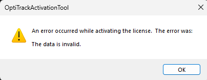 Wrong USB Key for the Version of Motive Installed