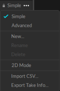 Take lists can be imported from a CSV file that contains take names on each row. To import, click on the top-right menu icon