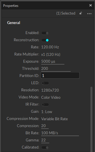 This setting enables the IR LED ring on the selected camera. This setting must be enabled to illuminate the IR LED rings to track passive retro-reflective markers.