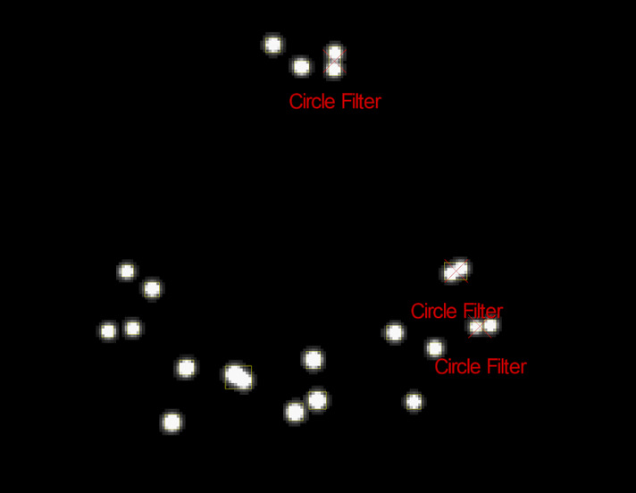 Using this 2D object filter, the software identifies marker reflections based on the shape, specifically the roundness, of the group of thresholded pixels. A higher circularity setting will filter out all other reflections that are not circular. We recommend optimizing this setting so that extraneous reflections are efficiently filtered out while true marker reflections are not.