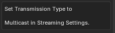 Transmission type - Set to Multicast. The Blender Plugin is currently unable to use Unicast.