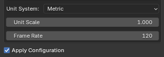 Once changes are made, click the Apply Configuration checkbox to override Blender's settings with those selected. Deselect the checkbox to revert settings back to Blender's default.