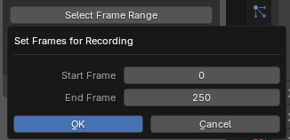 Click Select Frame Range, input the desired start and end frames to record within, and click OK.