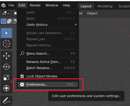 In Blender, select Preferences from the Edit menu.