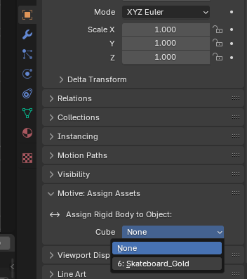 In the Motive: Assign Assets section, select the Rigid Body that you want to track with the mesh from the Cube dropdown list.