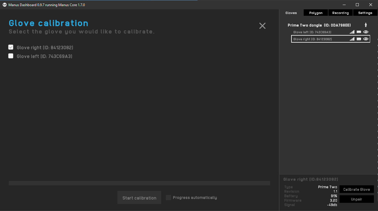 Manus Glove Setup