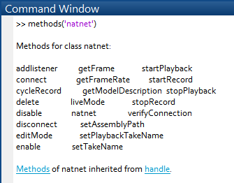 Class Properties: The available properties to the class can be seen with the following command, properties('natnet').