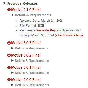 Wrong USB Key for the Version of Motive Installed