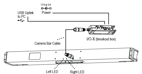 Make sure the power is disconnected from the I/O-X (breakout box) before plugging or unplugging the Camera Bar Cable. Hot-plugging this cable may damage the device.