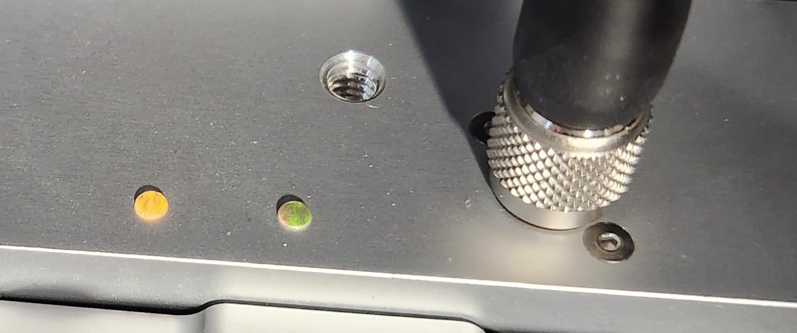 LED lights on the back of a Duo 3 or Trio 3 indicate the device's status.