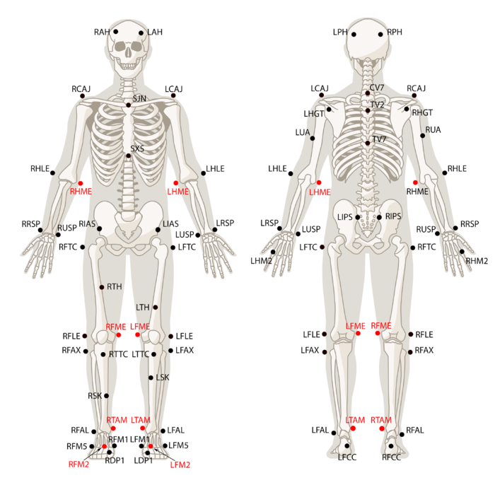 Note that the waist markers are the key markers in modeling the pelvis bone, which is the major segment governing the other subsequent Skeleton segments.