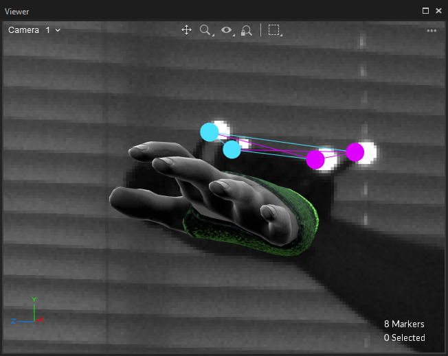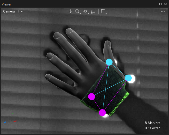 For best tracking results, we recommend attaching markers with Velcro directly to the gloves at the hand and wrist rather than using an attached rigid body.