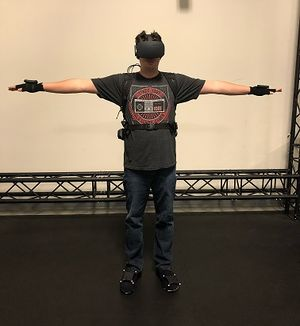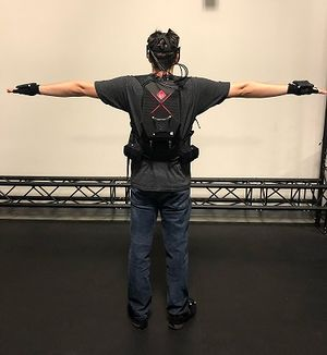 Attach a rigid body at mid-spine on the back. If using a VR backpack PC, this can be attached on top of the backpack PC. This rigid body can also be replaced by a hip rigid body, and in that case, the rigid body needs to be placed slightly above the center of the hip bone. (1)