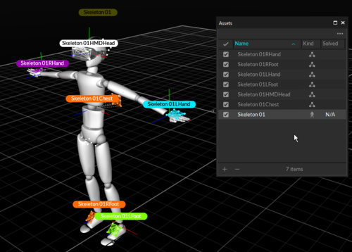 Prior to exporting, the recorded skeleton must be solved. Right click on the skeleton in the Asset Pane and select Solve. Your skeleton is now ready to export.