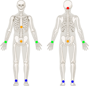 The Rigid Body Skeleton Marker Sets allows users to use rigid bodies to establish skeleton tracking. Rigid bodies are attached to head, torso, both hands, and both feet (6 rigid body skeleton only). Then, using the tracking information, Motive solves the entire skeleton through inverse kinematics. There are three types of rigid body skeleton Marker Sets in Motive: