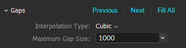 The maximum size, in frames, that a gap can be for Motive to fill. Raising this will allow larger gaps to be filled. However, larger gaps may be more prone to incorrect interpolation.
