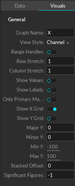 Use the Graph Editor to choose which data channels to plot (on the Data tab) and to format the overall look of the graph (from the Visuals tab).