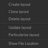 Displays the name of the system or user defined Layout currently in use. When clicked, opens the Layout menu.