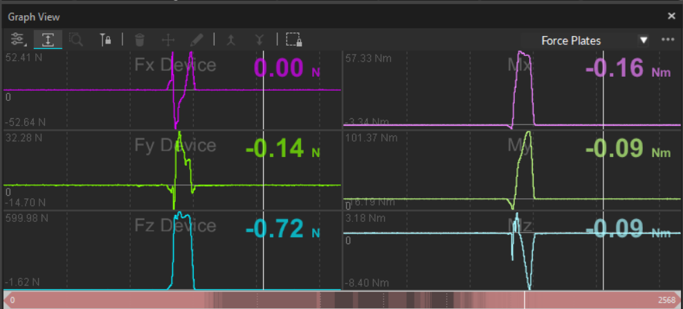 Plot force and moment (X/Y/Z) of selected force plate(s). The plotted graph respects the coordinate system of the force platforms (z-up).