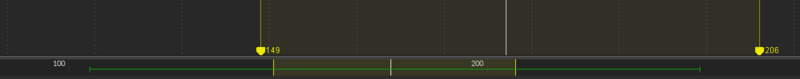 Frame range selection is used when making post-processing edits to specific ranges of the recorded frames. Select a range by left-clicking and dragging the mouse left or right. The selected frame ranges are highlighted in yellow. You can also select more than one frame ranges by shift-selecting multiple ranges.
