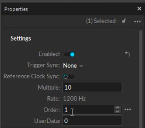The Mode property varies depending on whether Motive is in Live or Edit mode. When Live, the property will display Run Mode Live. When in edit mode, the property Sync Mode displays either a 1 if the device was set to use a trigger sync, and a 0 if it was not synced or it was set to a reference clock.