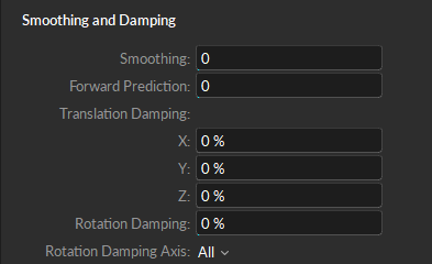 Apply double exponential smoothing to translation and rotation of the Rigid Body. Increasing this setting may help smooth out noise in the Rigid Body tracking, but excessive smoothing can introduce latency. The default value is 0 (disabled).