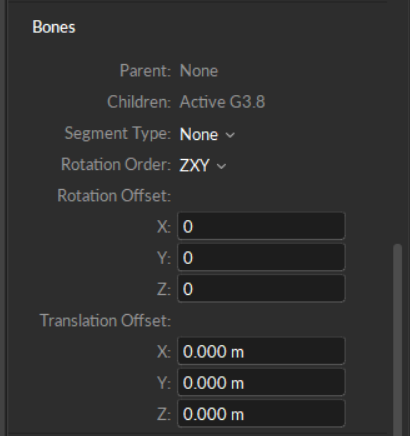 Used for Skeleton and Trained Markerset assets to identify bone segments. For Rigid Bodies, this value is set to None.