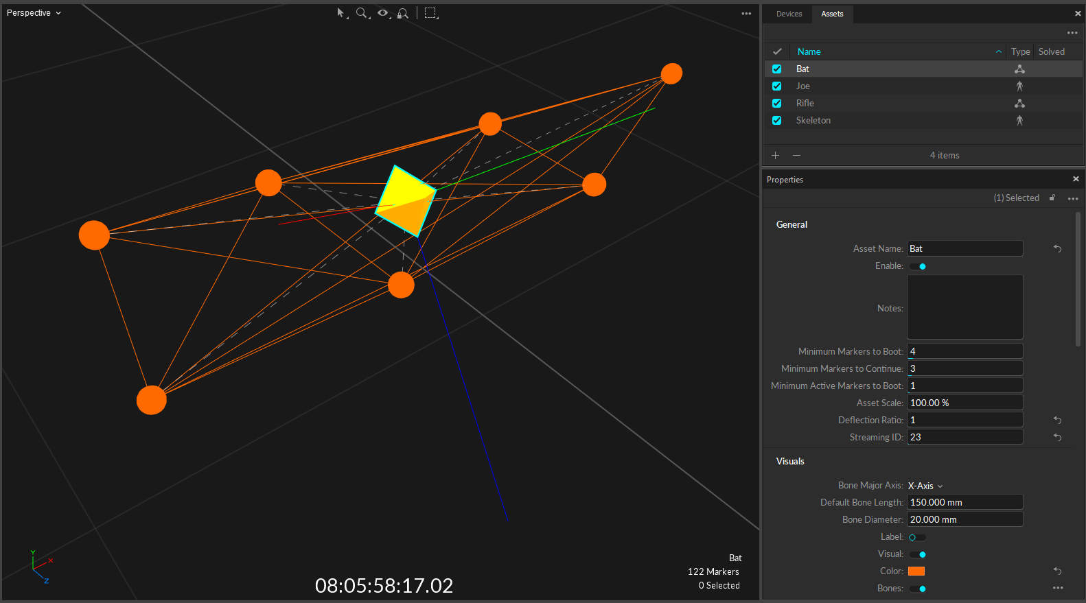 The Bone is the pivot point of a Rigid Body. Unlike Skeletons or Trained Markersets, Rigid Bodies are comprised of a single bone.