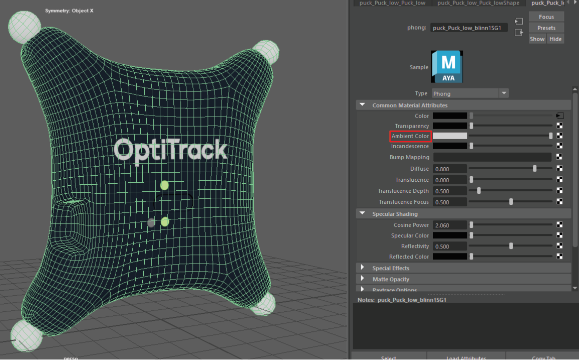 Sets the opacity of an attached object. An OBJ file typically comes with a corresponding MTL file which defines its properties, and the transparency of the object is defined within these MTL files. The Opacity value under the Rigid Body properties rescales the loaded property. In other words, you can set the transparency in the MTL file and rescale it using the Opacity property in Motive.