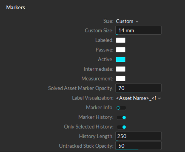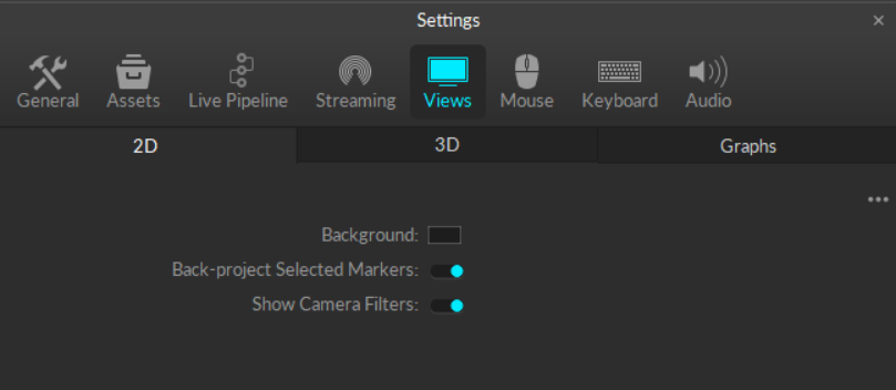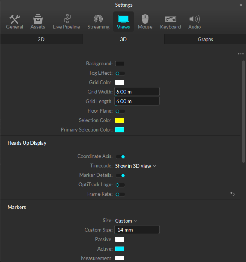 Motive's Views Settings defined.