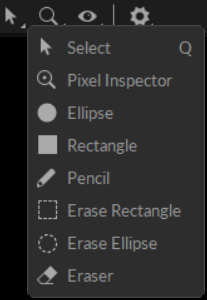 From this icon, you can switch between different mouse interaction modes in the camera viewport. This allows you to select objects, inspect pixels, and add or remove masks from the camera view.