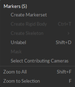 Create Rigid Body: Create a Rigid Body asset from the selected markers. This option is grayed out if the markers are already part of an existing asset.