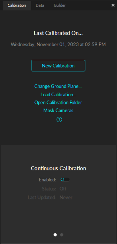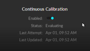 Continuous calibration is enabled from the Calibration Pane once a system has been calibrated. It will also show when the continuous calibration last updated and its current status.