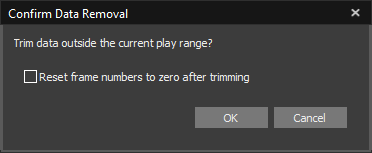 4) A dialog box will pop up asking to confirm the data removal. If you wish to reset the frame numbers upon trimming the take, select the corresponding check box on the pop-up dialog.