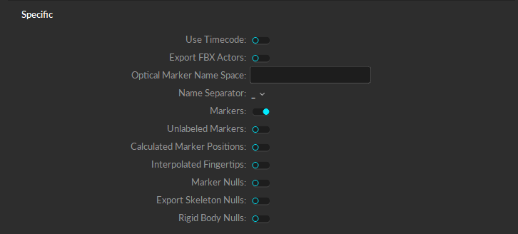 Choose ":" or "_" for marker name separator. The name separator will be used to separate the asset name and the corresponding marker name when exporting the data (e.g. AssetName:MarkerLabel or AssetName_MarkerLabel). When exporting to Autodesk Motion Builder, use "_" as the separator.