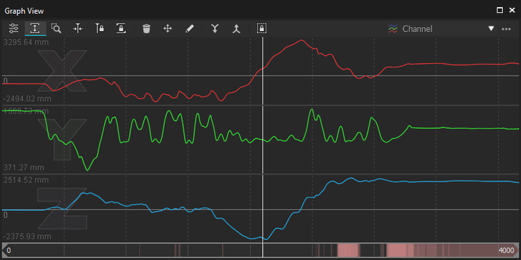 The Graph View pane is used to plot live or recorded channel data. There are many uses cases for plotting data in Motive; examples include tracking 3D coordinates of the reconstructed markers, 3D positions and orientations of Rigid Body assets, force plate data, analog data from data acquisition devices, and many more.