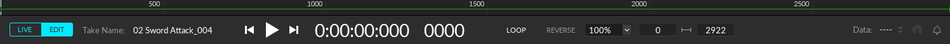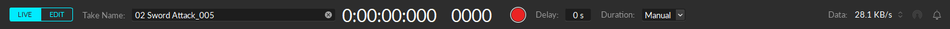 The Control Deck is always docked at the bottom of Motive, providing both recording and navigation controls over Motive's two operating modes: Live and Edit.