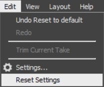 To reset all application settings to Motive defaults, select Reset Application Settings from the Edit menu.
