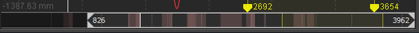When playing back a recorded capture, red marks on the navigation bar indicate areas with occlusions of labeled markers. Brighter colors indicate a greater number of markers with labeling gaps.