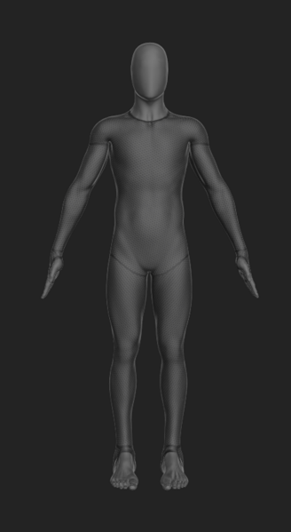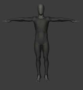 The A-pose is especially beneficial for subjects who have restricted mobility in one or both arms. Unlike the T-pose, arms are abducted at approximately 40 degrees from the midline of the body, creating an A-shape. There are three different types of A-pose: Palms down, palms forward, and elbows bent.