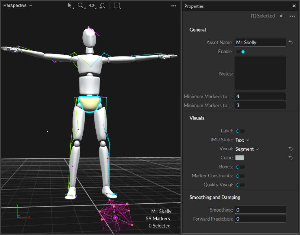 [Optional] Under the advanced properties of the target Skeleton, enable the Marker to Constraint Lines property to view which markers are associated with different Skeleton bones.