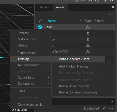 Right-click the newly created asset and select Training -> Auto-Generate Asset.