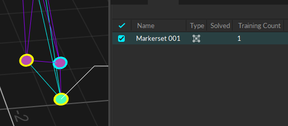 Add Marker Training goes through and adds a learned model of the Markerset. It's best to train the Markerset based on a full Range of Motion of the object you would like to track. This means moving the object to the limits of how it can move for one take, then labeling that take as well as you can, then running this training method on it.