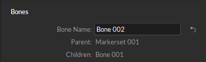 When a child bone is selected, you can select Reroot Bones to make a child bone the parent. i.e. Bone 002 is a child of Bone 001 and Bone 001 (the root bone) is a child to Markerset 001. After selecting Bone 002 and Reroot bones, Bone 002 is now the parent to Bone 001 and the child to Markerset 001.