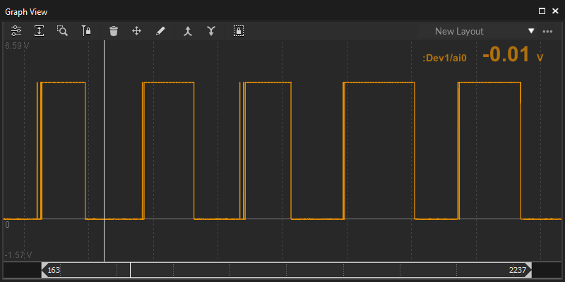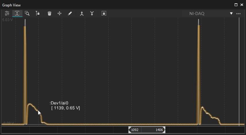 Once the NI-DAQ device is recognized properly, you will be able to observe the real-time signal on the Graph View pane.