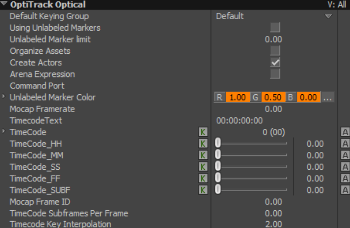 Check this property to enable timestamping keys using the timecode contained in the Motive data packet.