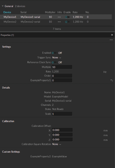 • Motive UI access to device properties and event settings under the Devices pane, allowing the users to configure the device in Motive.